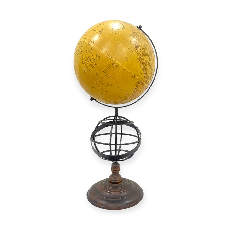 ลูกโลกพร้อมวงแหวนบนฐานไม้ สำหรับตกแต่งสไตล์คลาสสิก