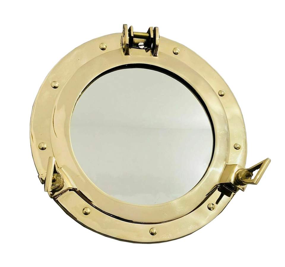 กระจกทองเหลืองทำมือขนาด 12 นิ้ว กระจกติดผนังทรงกลมสไตล์วินเทจพร้อมการเคลือบผิวแบบโบราณ