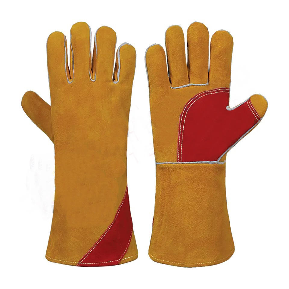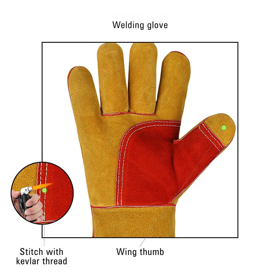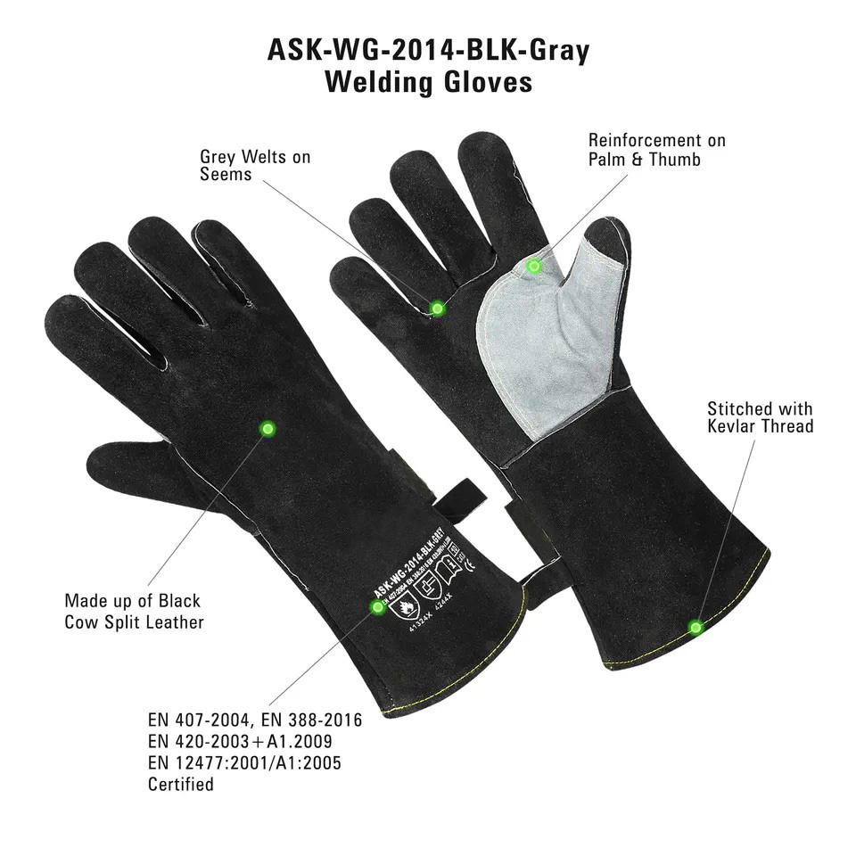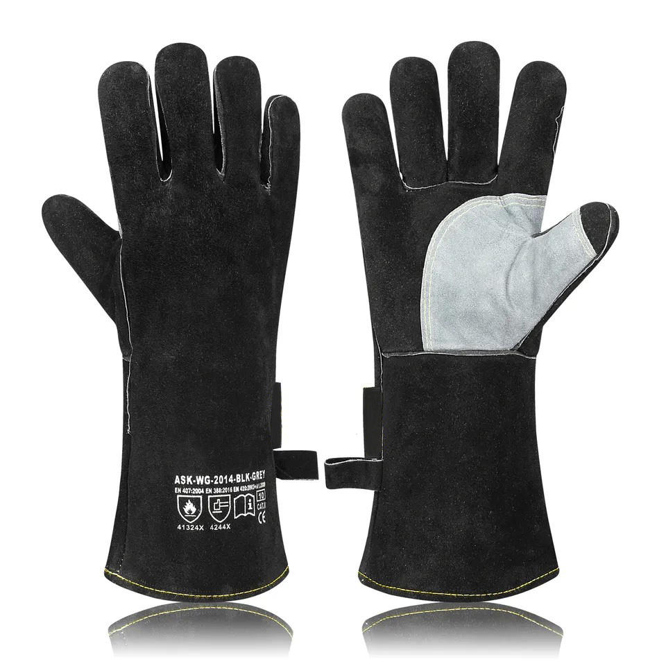 12นิ้วถุงมืองานเชื่อมหนังวัวสีดำ XL ยืดหยุ่นและป้องกันไฟตัดได้