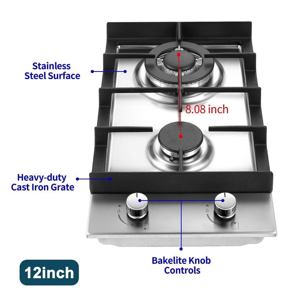 เตาแก๊สแบบเปลี่ยนได้ NG/LPG สแตนเลสขนาด 12 นิ้ว พร้อมหัวเตา 2 หัว
