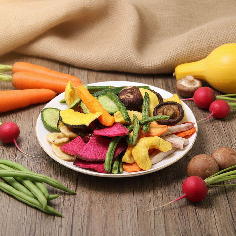 ผลไม้อบแห้งและผักอบแห้งรวม 12 ชนิด แบบแห้งและแบบแช่แข็ง พร้อมรับประทาน ขนมเพื่อสุขภาพ รสหวาน ได้รับการรับรองฮาลาลและโคเชอร์ 100% จากธรรมชาติ