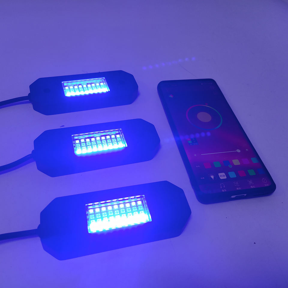 แถบไฟเต้นรำ LED ภายใน12ดวงพร้อมรีโมทควบคุมดนตรีไร้สายโคมไฟตกแต่งบรรยากาศไฟ LED RGB แบบร็อค