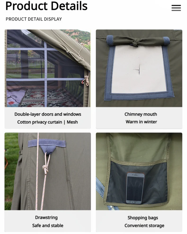 เต็นท์ลมสำหรับตั้งแคมป์กลางแจ้งแบบหรูหรา 12 ที่นอน ทำจากผ้า Oxford กันน้ำ พร้อมช่องแสงบนหลังคาและช่องสำหรับเตาแก๊ส เหมาะสำหรับงานอีเว้นท์และปาร์ตี้