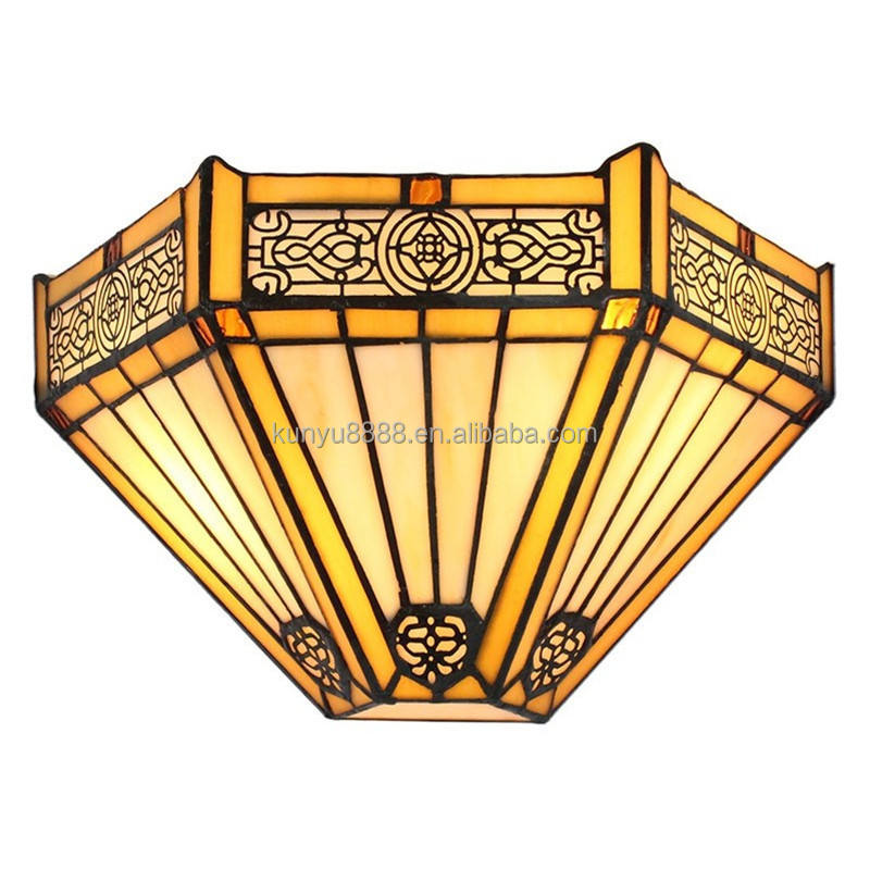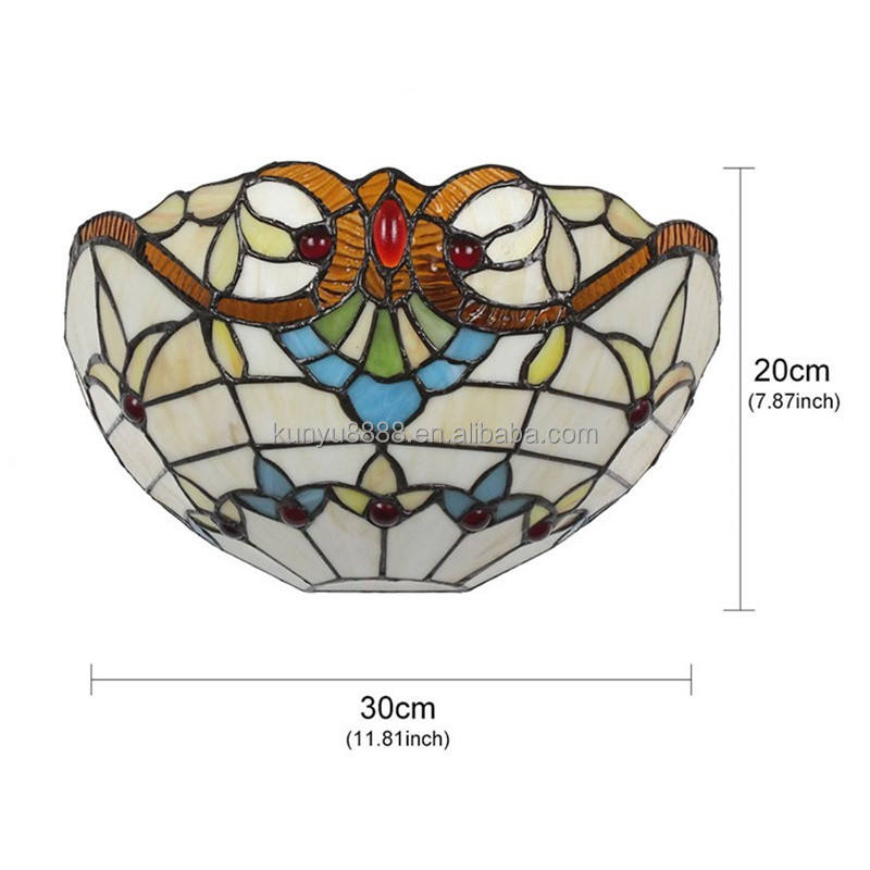 โคมไฟติดผนังครึ่งวงกลมแก้วสีน้ำตาลทำมือสไตล์ทิฟฟานีขนาด 12 นิ้ว ดีไซน์บาโรก สำหรับห้องนอน ห้องรับประทานอาหาร