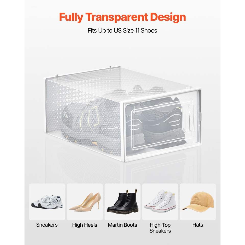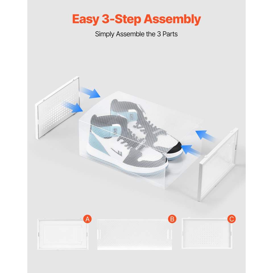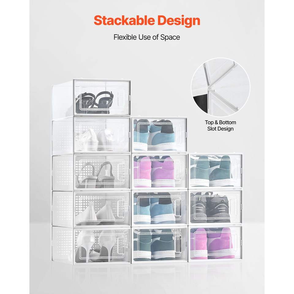 กล่องเก็บรองเท้าแบบซ้อนได้ 12 ชิ้น กล่องพลาสติกแบบโมดูลสำหรับรองเท้าผ้าใบไซส์ 11 ของสหรัฐอเมริกา ดีไซน์ประหยัดพื้นที่