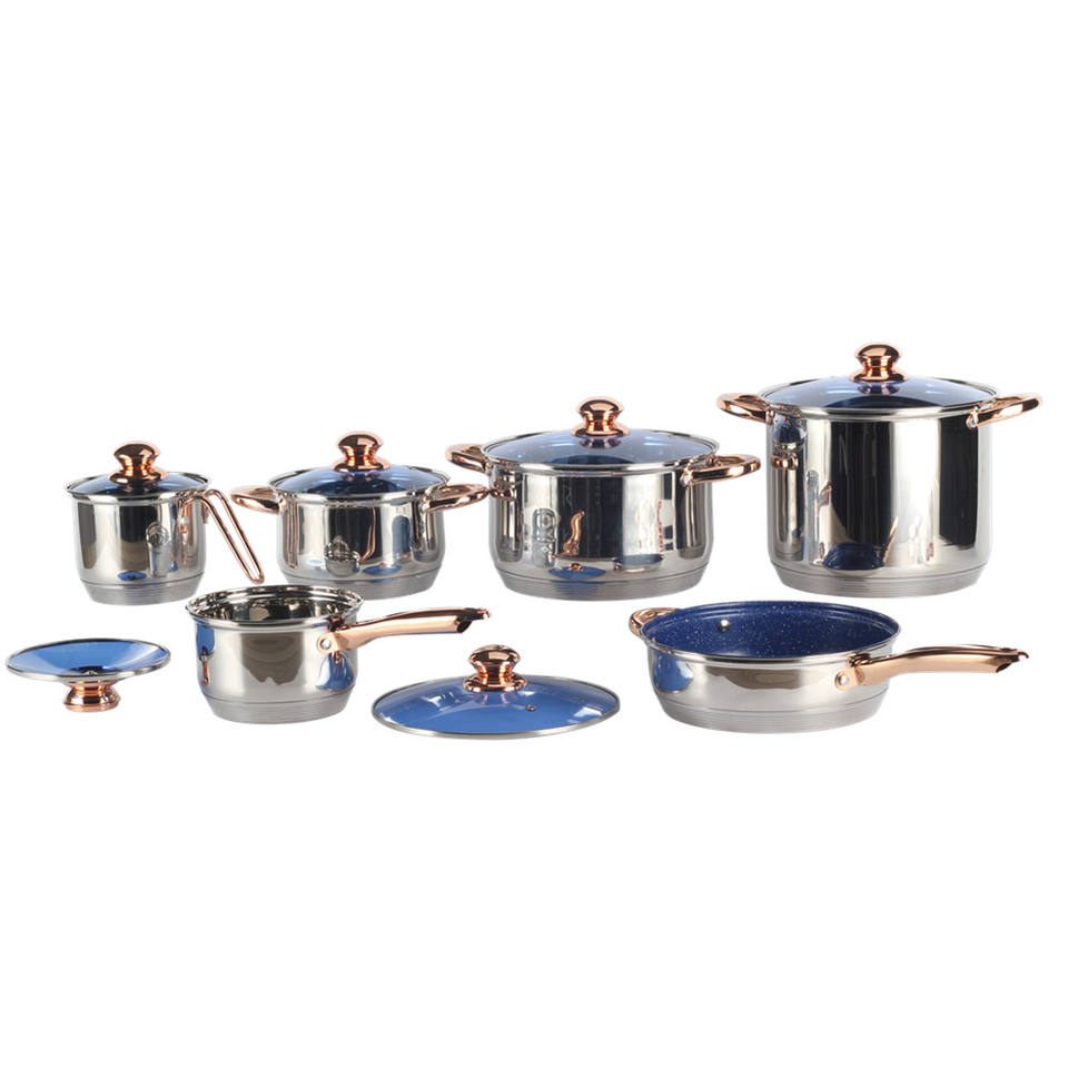 ชุดหม้อและกระทะสแตนเลสหนัก4ชิ้น12ชิ้นชุดเครื่องครัวคุณภาพระดับมืออาชีพ