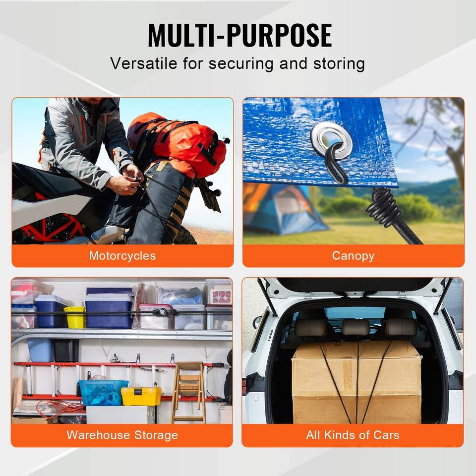 ชุดสายรัดบันจี้จัมพ์แบบหนา 12 ชิ้น ขนาด 32 นิ้ว เชือกบันจี้จัมพ์ยืดหยุ่น 8 มม. พร้อมตะขอเหล็ก A3 สำหรับผ้าใบกันน้ำสำหรับตั้งแคมป์ เชือกบันจี้จัมพ์ยืดหยุ่น 8 มม.