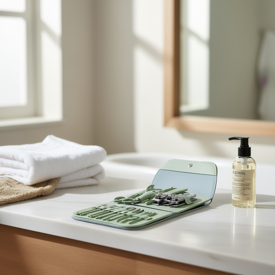 ชุดทำเล็บ 12 ชิ้นพร้อมเครื่องตัดเล็บ 5-in-1 เครื่องมือสแตนเลสชุดดูแลเล็บแบบพกพาสำหรับผู้ใหญ่สไตล์คลาสสิกสีเขียว