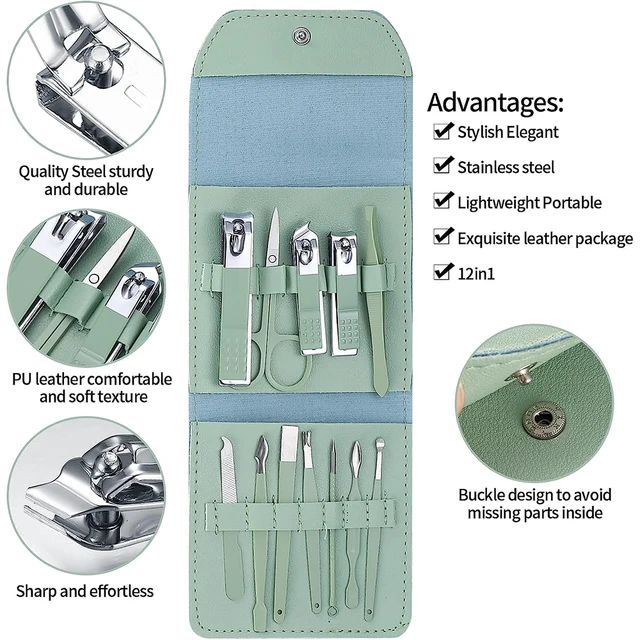 ชุดทำเล็บมืออาชีพ 12 ชิ้น 5 in 1 กรรไกรตัดเล็บสแตนเลส ชุดดูแลเล็บสุดหรูสำหรับการเดินทาง เหมาะสำหรับทุกเพศทุกวัย