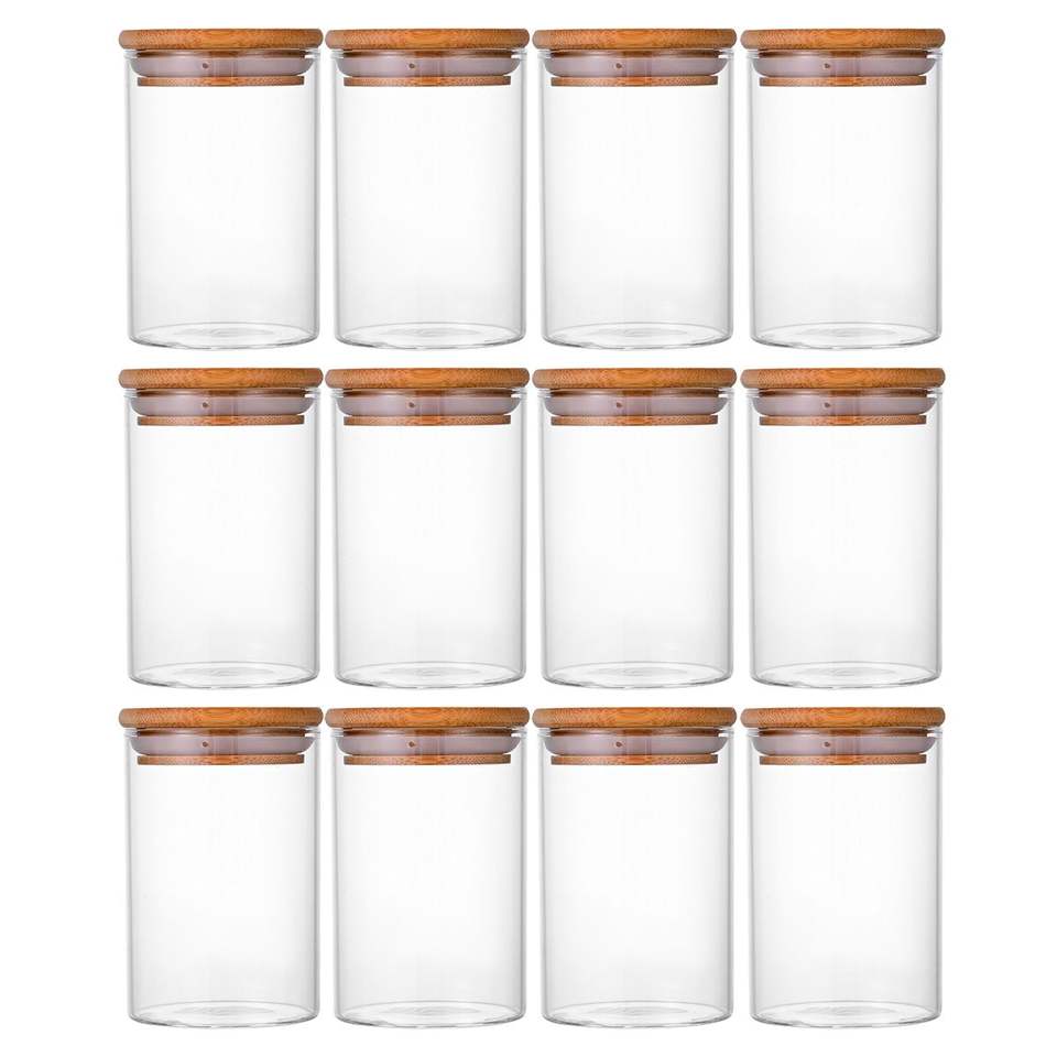 12-Piece Set Spice Jars Bamboo Lids Stickers Glass Storage Candy Coffee Salt Pepper Tea Jars Versatile Kitchen Storage Bottles