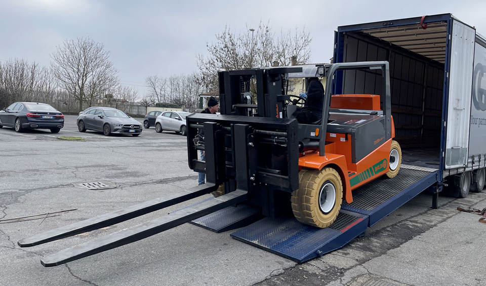 รถยกไฟฟ้า12ตันสำหรับยกของภูมิประเทศสูงสุด6000มม. รถยกสูงแบบพกพาผลิตในประเทศอิตาลี