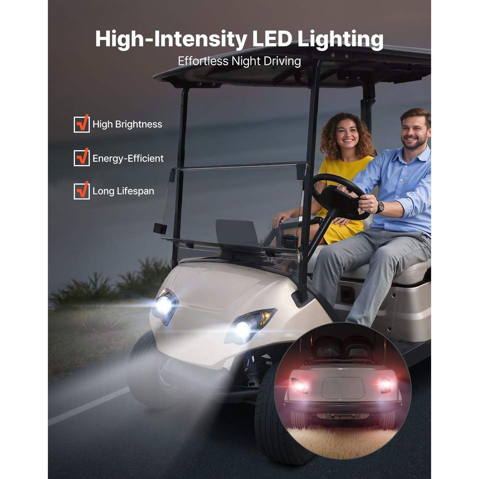 ชุดไฟรถกอล์ฟ 12 โวลต์ ไฟหน้า LED ไฟท้าย LED สายไฟสำหรับติดตั้ง ไฟเลี้ยว ไฟฉุกเฉิน ไฟท้าย LED สำหรับใช้งานบนถนน