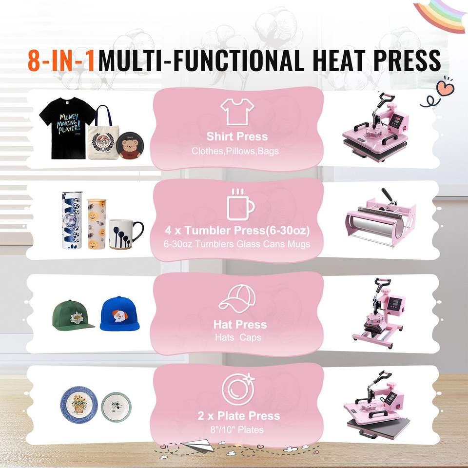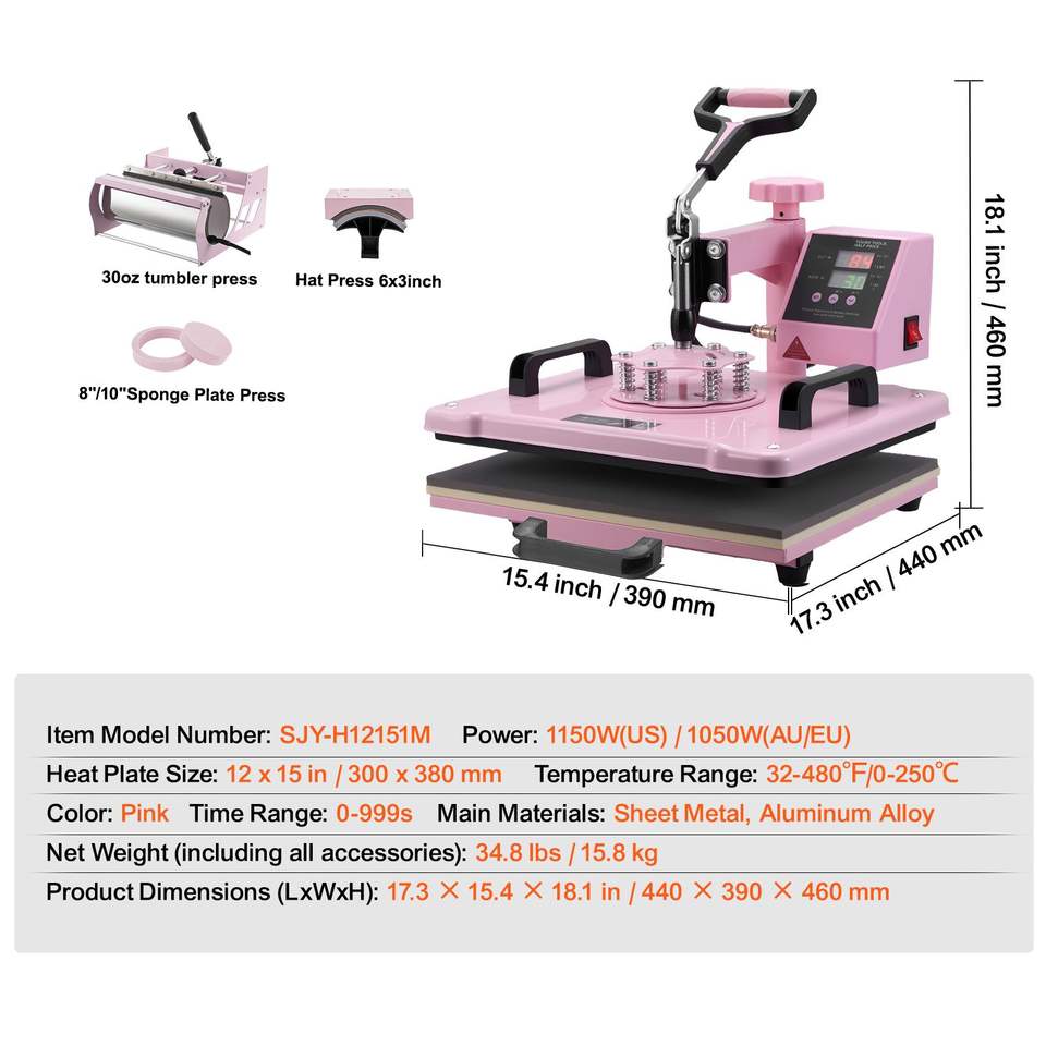 เครื่องรีดร้อนขนาด 12 x 15 นิ้ว 5 in 1 สำหรับงานทรานเฟอร์ แก้วน้ำขนาด 30 ออนซ์ แบบหมุนได้ 360 องศา สำหรับรีดเสื้อยืด