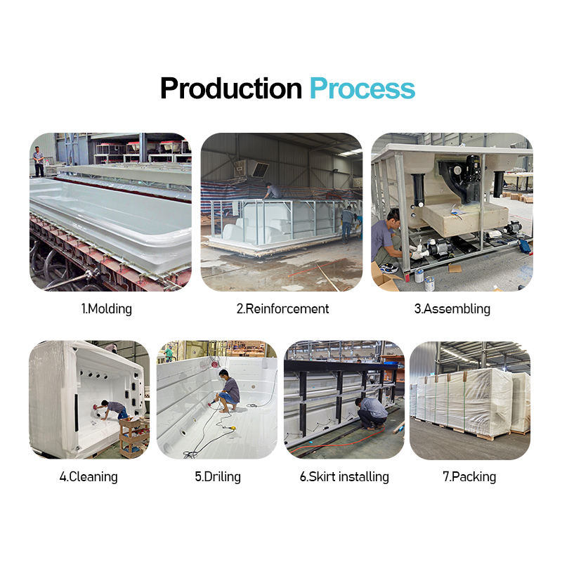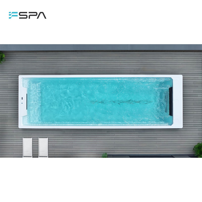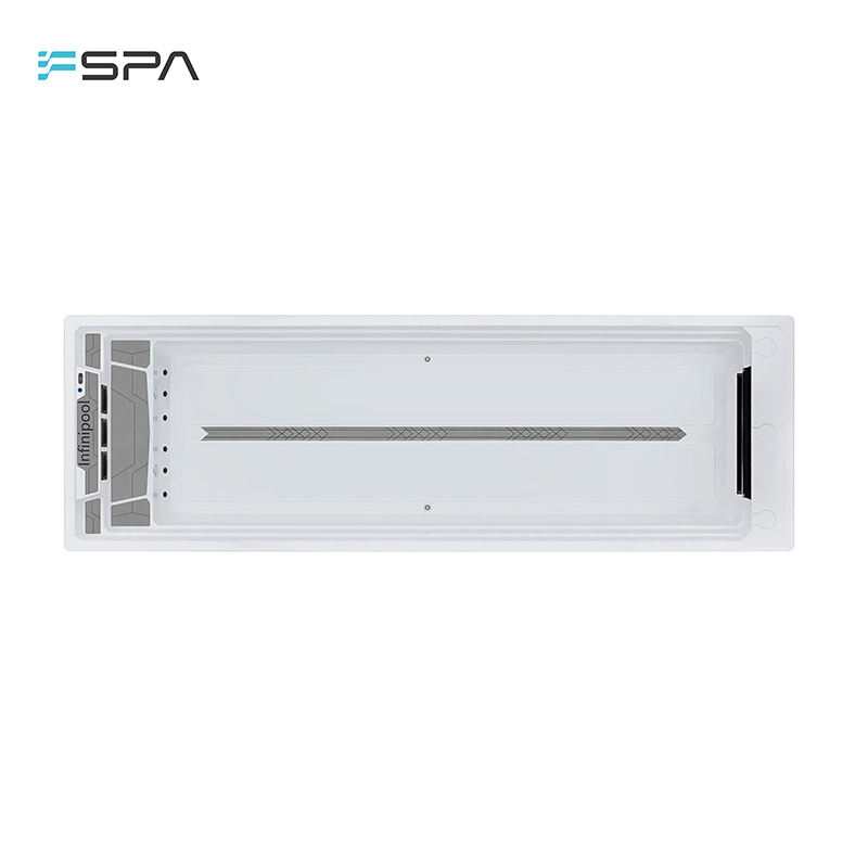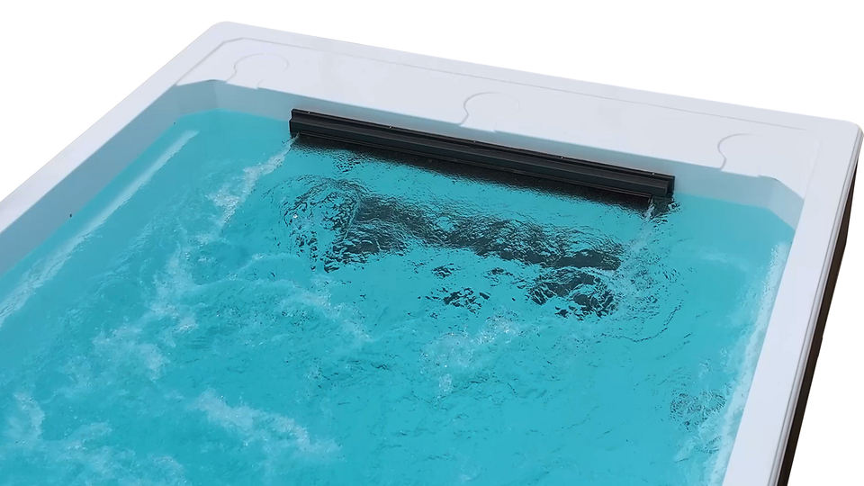 สระว่ายน้ำแบบ Endless Pool ขนาด 12 เมตร พร้อมอ่างน้ำร้อนกลางแจ้งในตัว ระบบสปาว่ายน้ำพร้อมระบบนวดจากุซซี่ ระบบ Balboa และปั๊มน้ำแบบเทอร์ไบน์สำหรับเล่นกระดานโต้คลื่น
