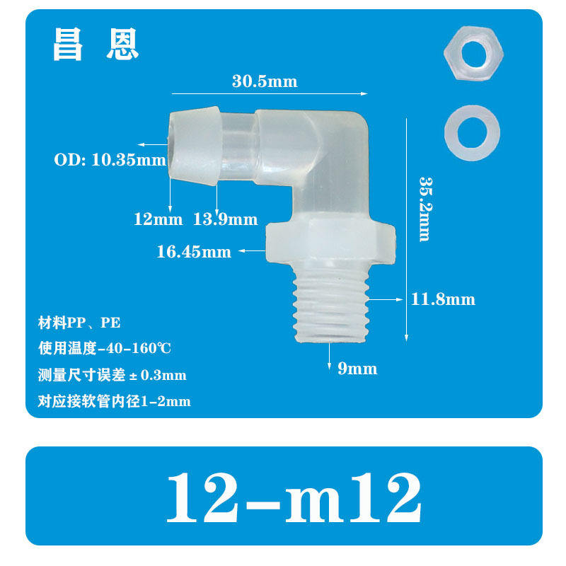 ข้อต่อโค้งแบบพุ่มไม้เกลียวตัวผู้ 12-m12 พร้อมน็อตและแหวนรอง สำหรับสายเชื่อมต่อท่อพลาสติกในสายการผลิต