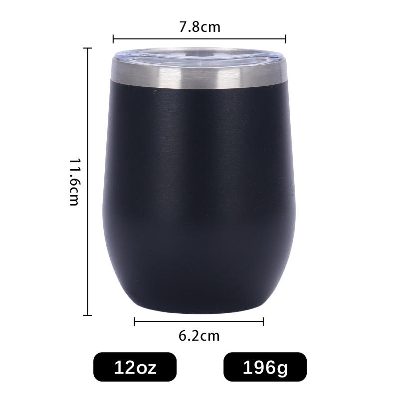 แก้วกาแฟ/ชาแบบพกพา ขนาด 12 ออนซ์ รูปทรงไข่ สแตนเลสเก็บความร้อน/เย็น ป้องกันการรั่วซึม ปราศจากสาร BPA พร้อมโลโก้สั่งทำพิเศษ สำหรับกลับไปโรงเรียน