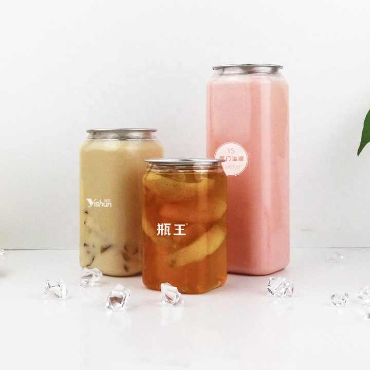 ขวดน้ำผลไม้พลาสติก 12 ออนซ์ พร้อมฝาปิด กระป๋อง PET แบบมีห่วงดึง