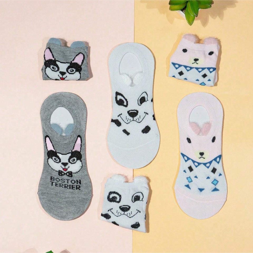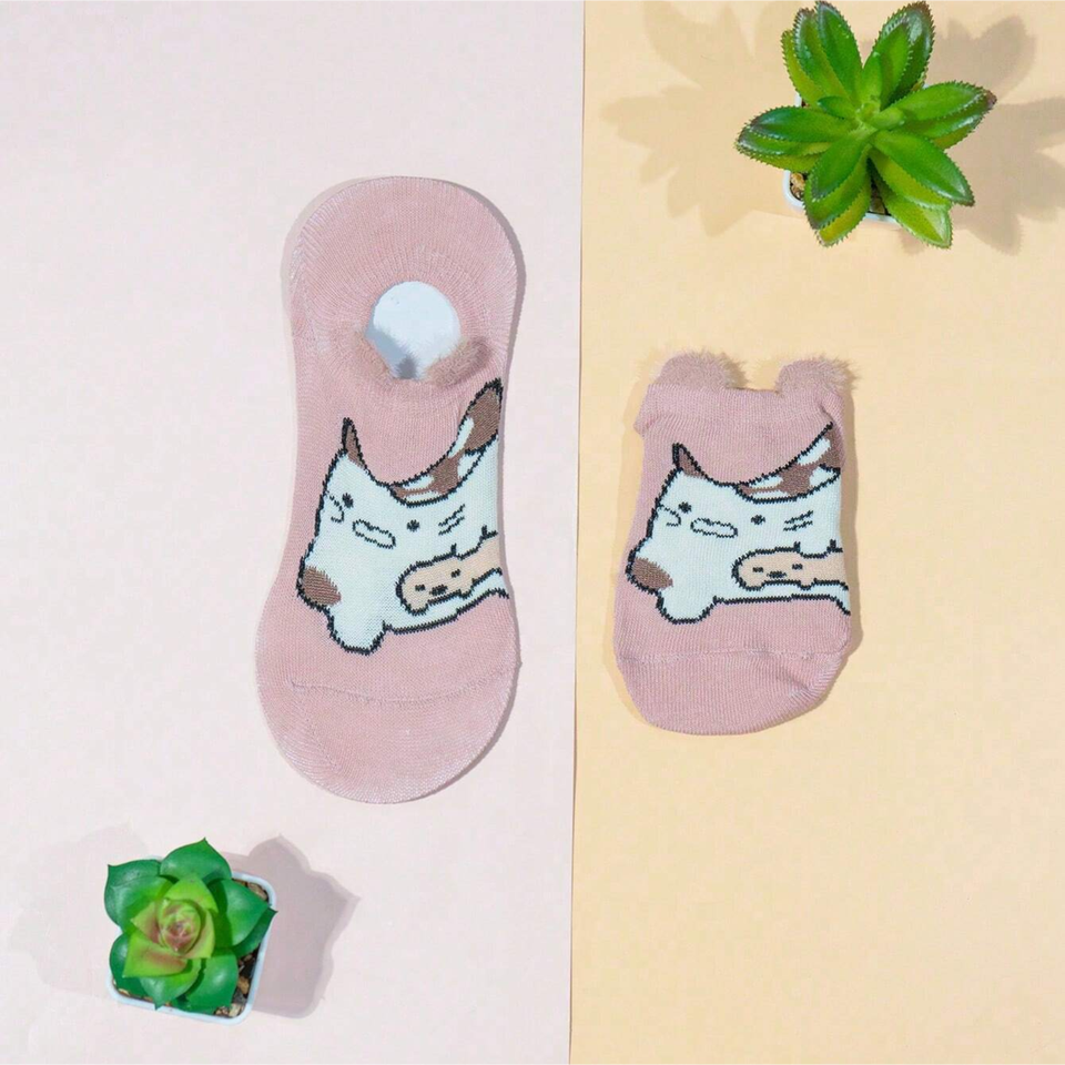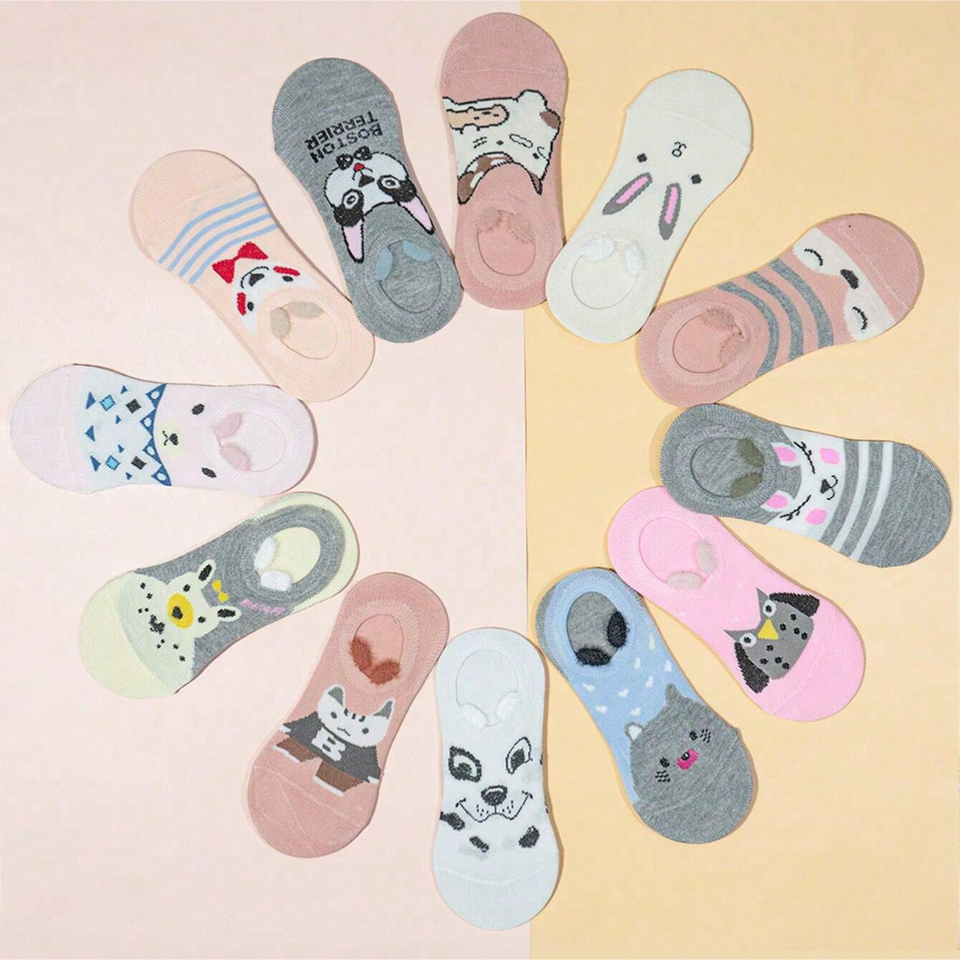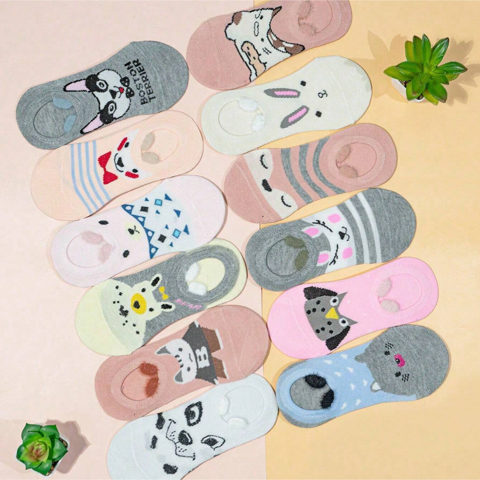 12-pair pack of women's socks in various styles, featuring cute fuzzy ears and cartoon-style thin, breathable socks
