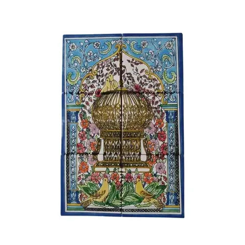 12 "x 18" ภาพวาดด้วยมือกรงนกเซรามิกผนังศิลปะจิตรกรรมฝาผนังกระเบื้องโมเสคตกแต่ง