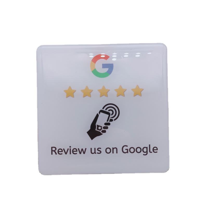 120*120mm 213 Full Color Printing google Review Nfc Menu Table Tags PVC NFC Card with Epoxy and Acrylic