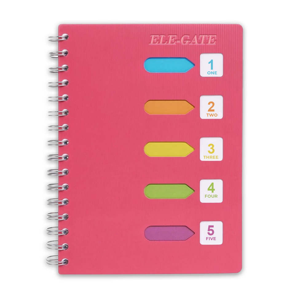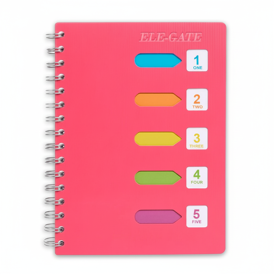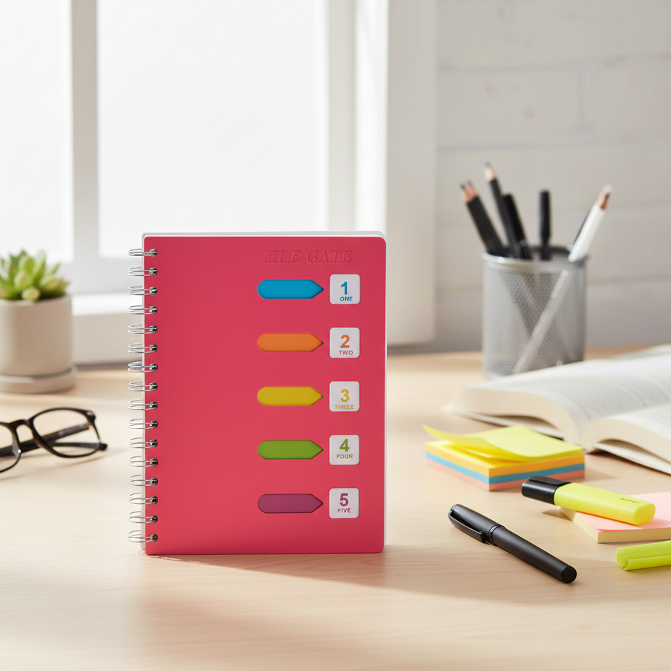 สมุดบันทึกแบบสันห่วง 80 แผ่น พร้อมแผ่นแบ่งสีและปกกระดาษ