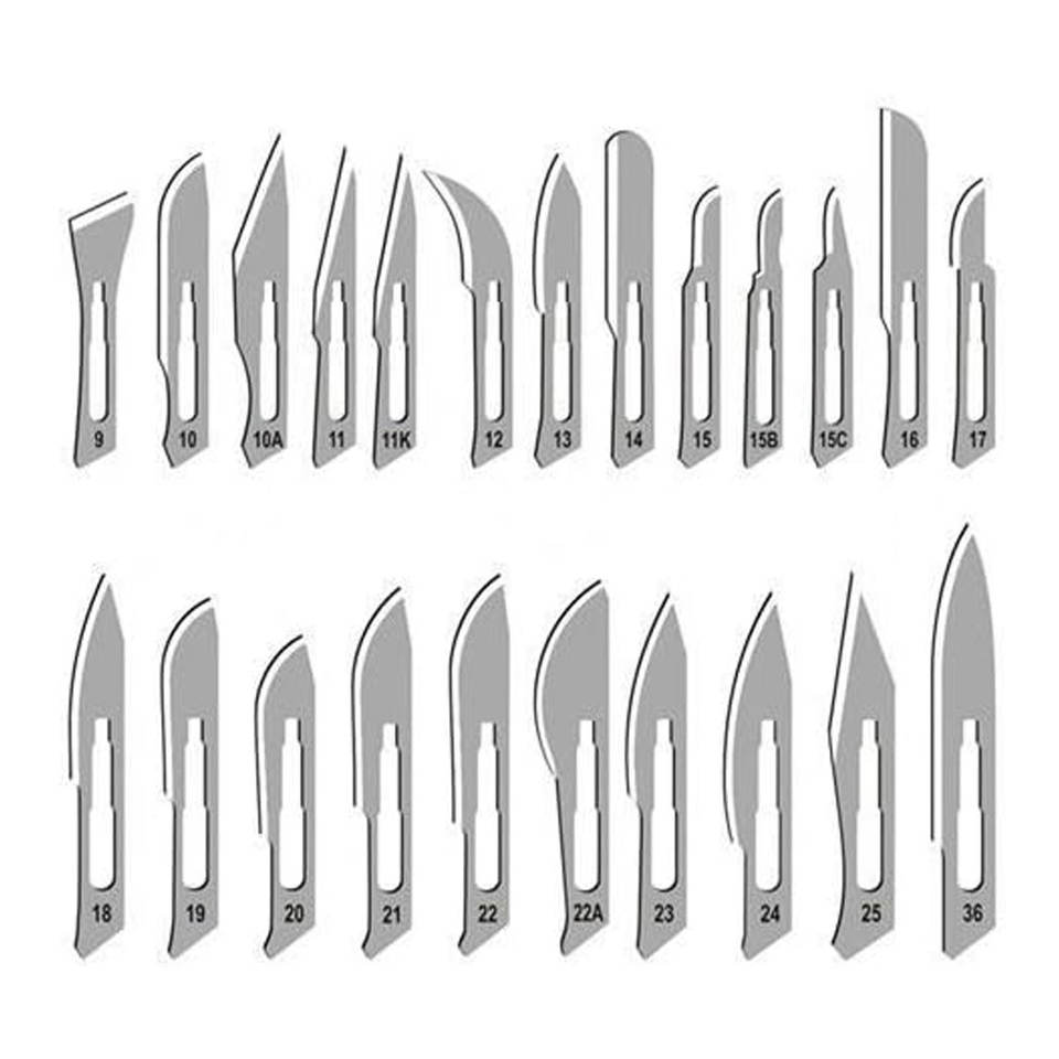 ใบมีดผ่าตัดปลอดเชื้อ 120 ใบ ขนาดต่างๆ 10 11 15 20 21 22 พร้อมด้ามจับมีดผ่าตัดเบอร์ 3 และเบอร์ 4 จำนวน 2 ด้าม บรรจุภัณฑ์แยกชิ้น เหมาะสำหรับการใช้งาน