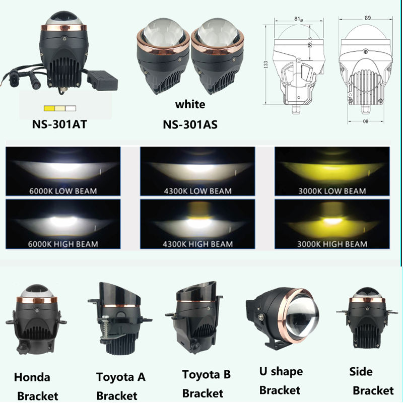 เลนส์โปรเจคเตอร์ LED 120วัตต์3นิ้ว3สีไฟตัดหมอก LED 12V 24V อุปกรณ์ตกแต่งรถยนต์ H7 LED สำหรับ Toyota Corolla/C-HR/altis