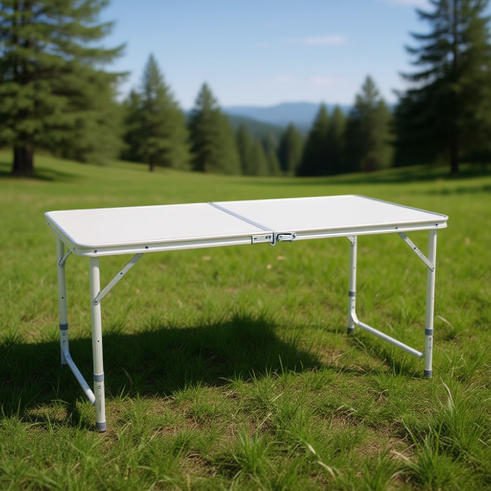 โต๊ะพับสีขาวแบบพกพา 120 X 60 X 70 ซม. โครงอะลูมิเนียม เฟอร์นิเจอร์สำหรับตั้งแคมป์กลางแจ้ง ดีไซน์เรียบง่าย รูปทรงสี่เหลี่ยมผืนผ้า