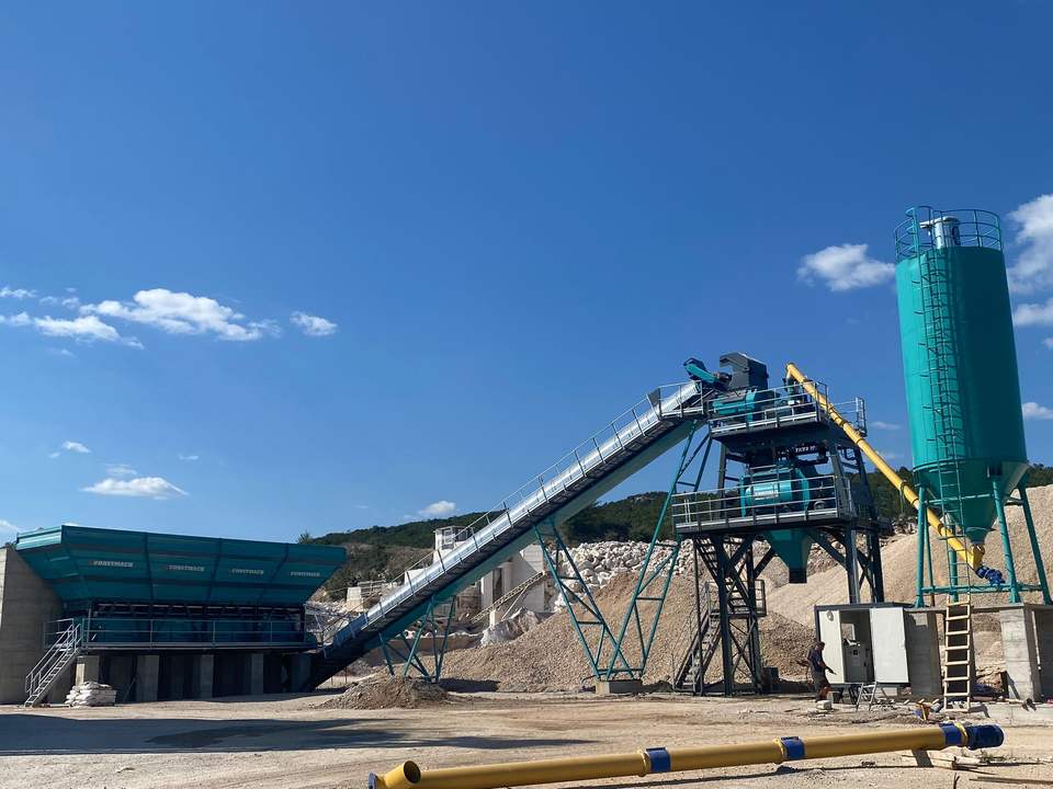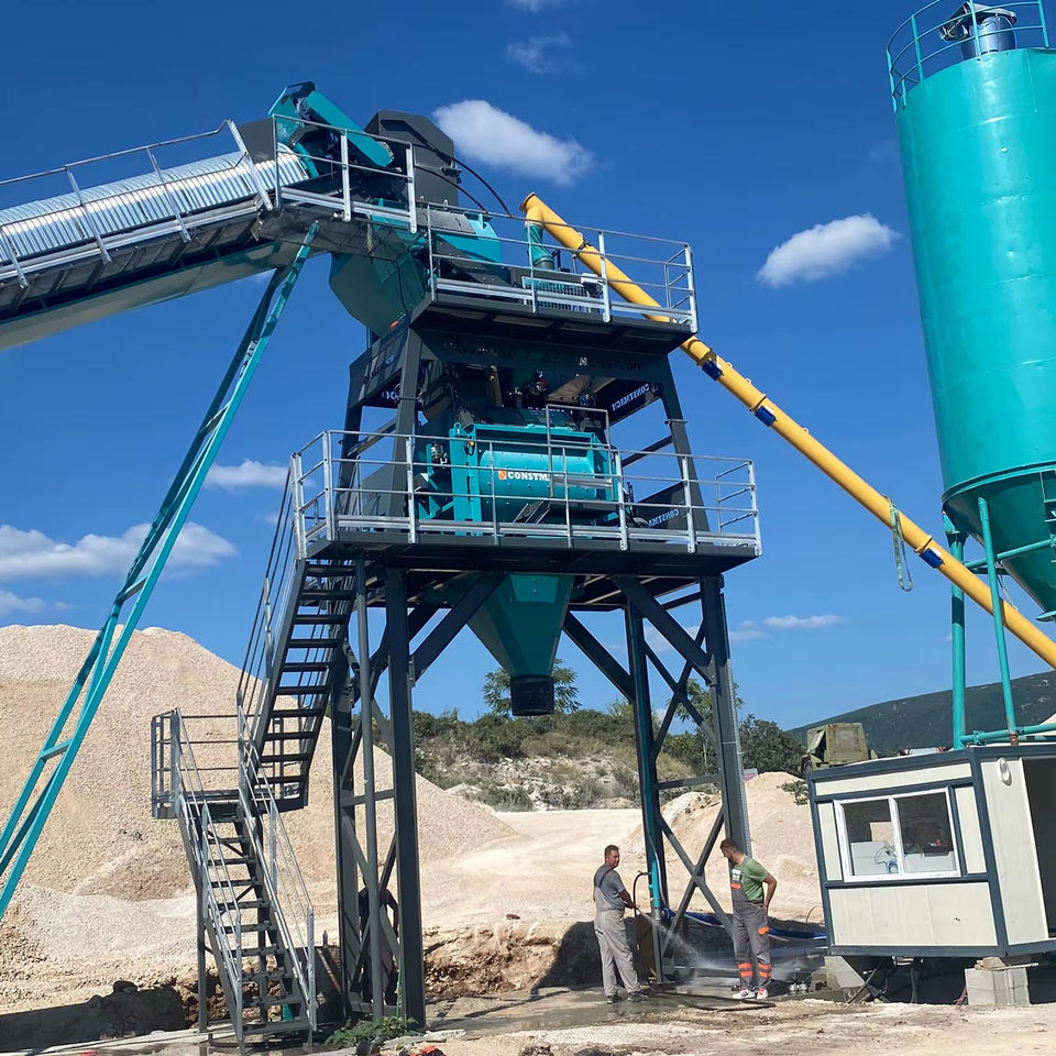 โรงงานผสมคอนกรีตสำเร็จรูปแบบติดตั้งอยู่กับที่ กำลังการผลิต 120 ลูกบาศก์เมตร/ชั่วโมง แบบอัตโนมัติเต็มรูปแบบ พร้อมเครื่องผสมแบบสองเพลา ใช้พลังงานไฟฟ้า รวมส่วนประกอบหลัก