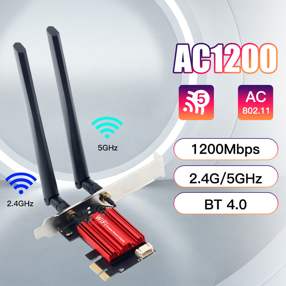 การ์ดเครือข่ายไร้สาย1200Mbps PCI-E 802.11AC เดสก์ท็อปแบนด์คู่2.4G 5g 2 in 1 AC1200 PCI E PCIe อะแดปเตอร์บลูทูธ