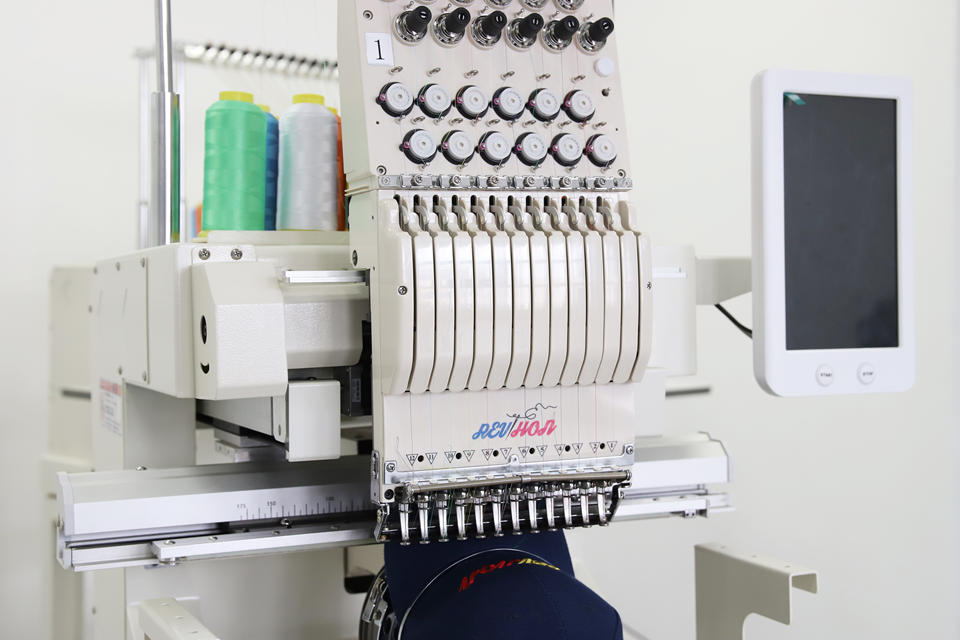 เครื่องปักผ้าคอมพิวเตอร์แบบหัวเดียว รุ่น REVHON จากโรงงานจีน ความเร็ว 1200 รอบต่อนาที 9/12 เข็ม สำหรับงานปักผ้าระดับมืออาชีพ