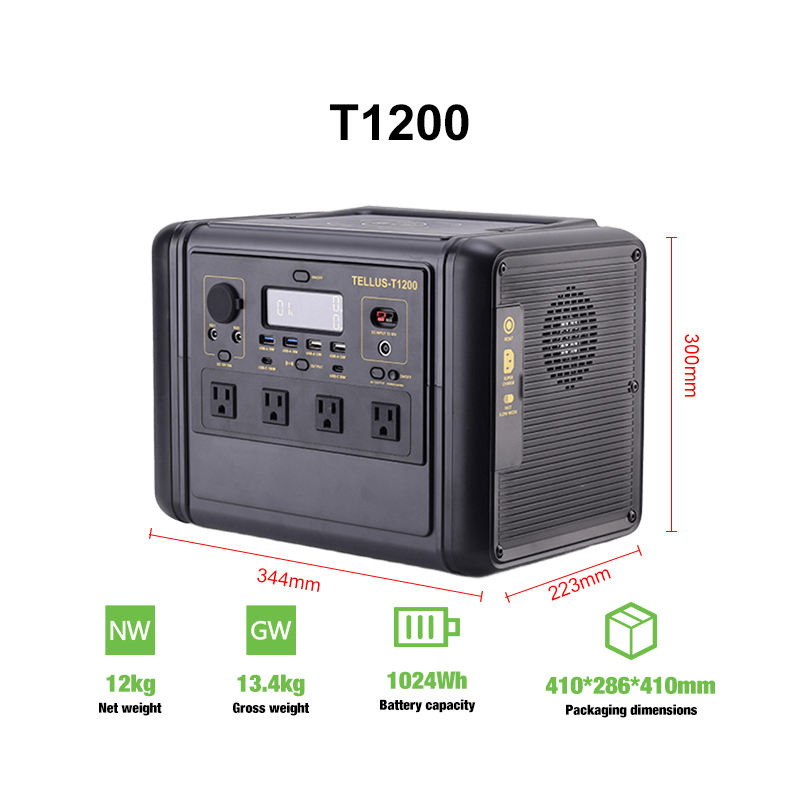 สถานีพลังงานแสงอาทิตย์แบบพกพา 1200W แบตเตอรี่ลิเธียมไอรอนฟอสเฟต LiFePo4 สำหรับใช้ในบ้าน แผงโซลาร์เซลล์กลางแจ้ง สำรองไฟฉุกเฉิน