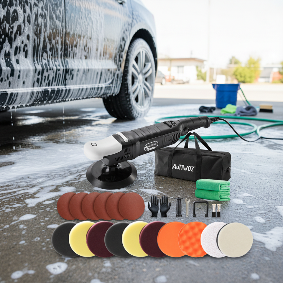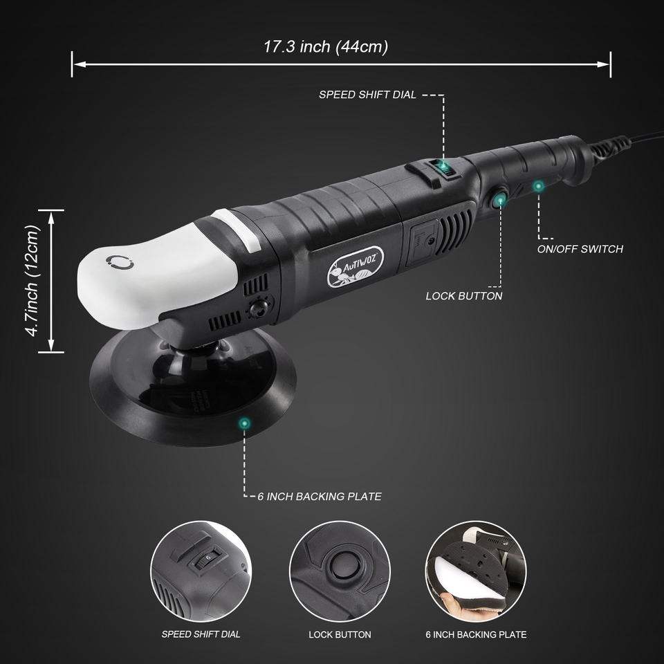 เครื่องขัดสีรถยนต์แบบโรตารี่คู่ 1200 วัตต์ ขนาด 6 นิ้ว 150 มม. ปรับความเร็วได้ สำหรับขัดเคลือบสีรถยนต์และขัดพื้น 110-240 โวลต์ 1 เฟส