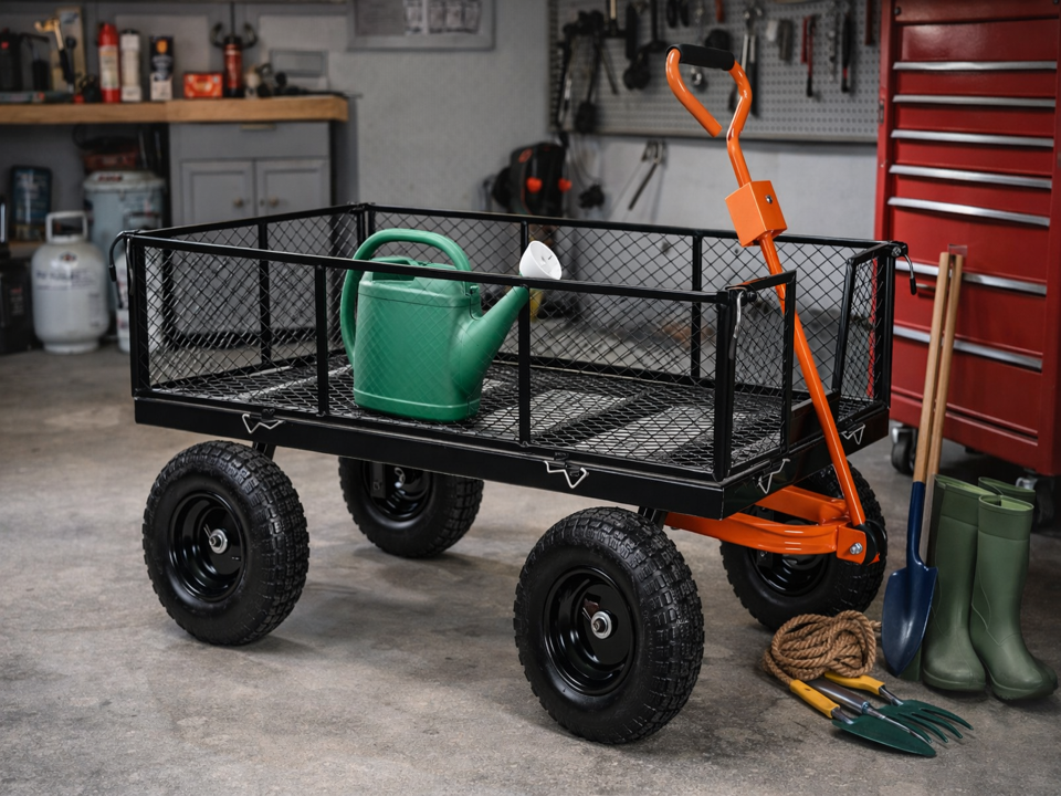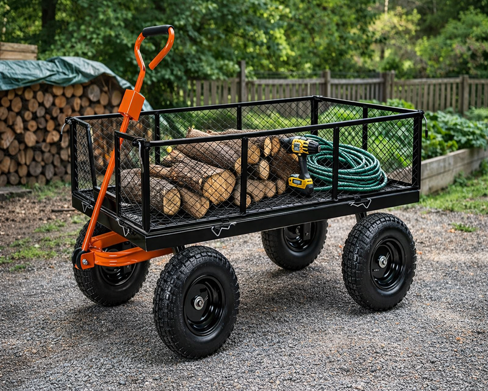รถเข็นสวนโลหะรับน้ำหนักได้ 1200 ปอนด์ พร้อมด้านข้างตาข่ายถอดออกได้ ยางลมขนาด 10 นิ้ว เหมาะสำหรับสวน ฟาร์ม โรงรถ ODGGAR049
