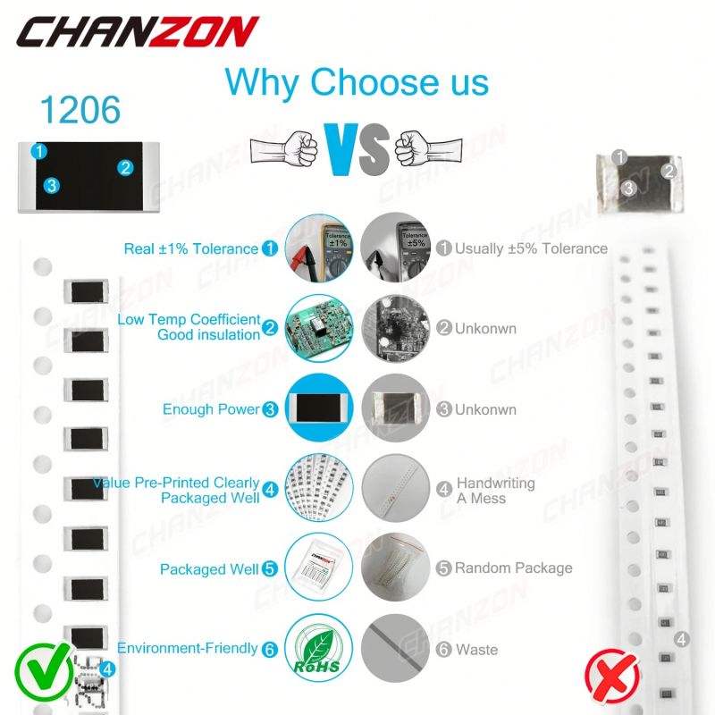 ชื่อผลิตภัณฑ์:1200ชิ้น1/4W 1% SMD ตัวต้านทาน1206 (60ค่า x 20)