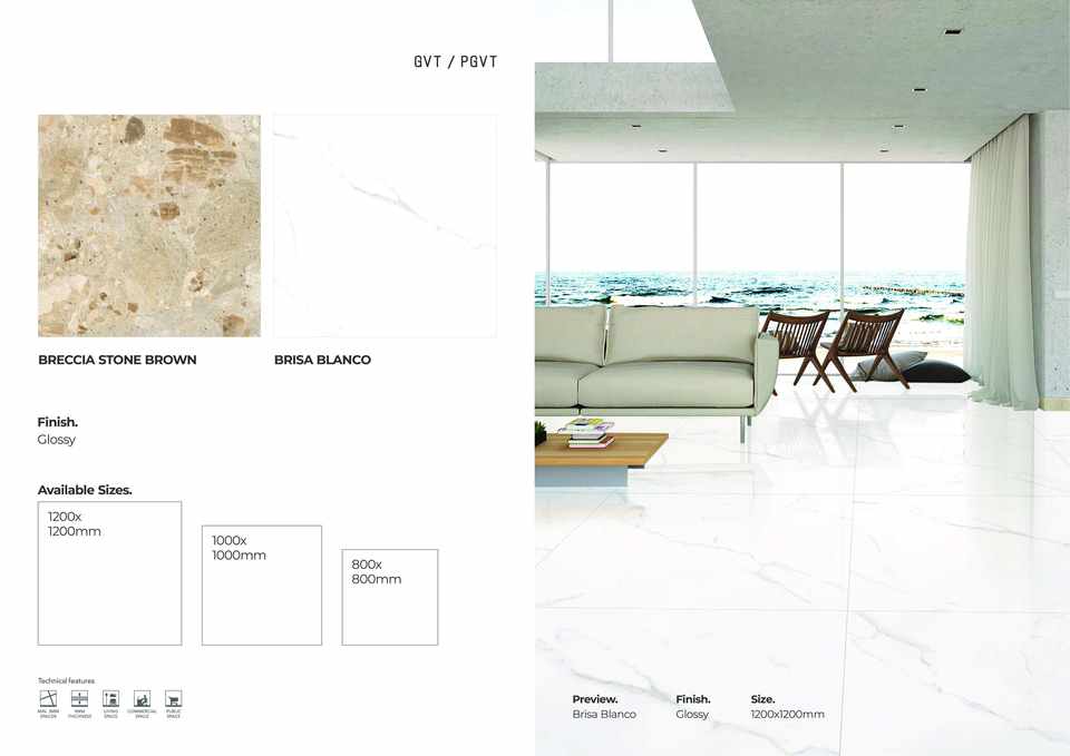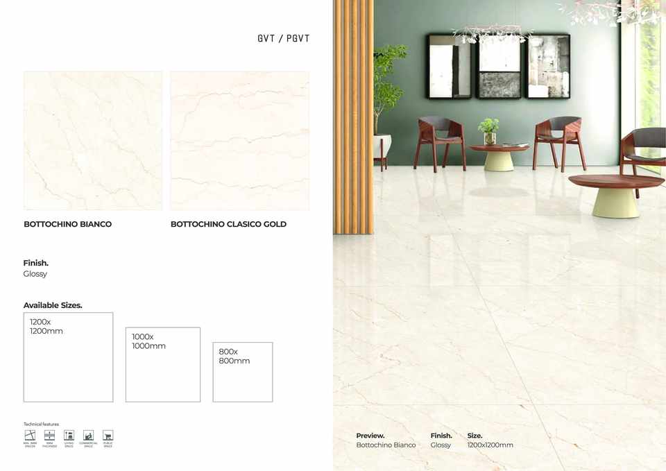 กระเบื้องปูพื้นและผนังพอร์ซเลนแบบมันเงา ขนาด 1200x1200 มม. ผิวมันเงาสูง สำหรับตกแต่งภายใน
