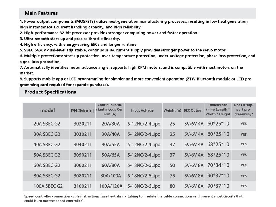 120A ESC G2 ซีรีส์ชื่อสินค้า