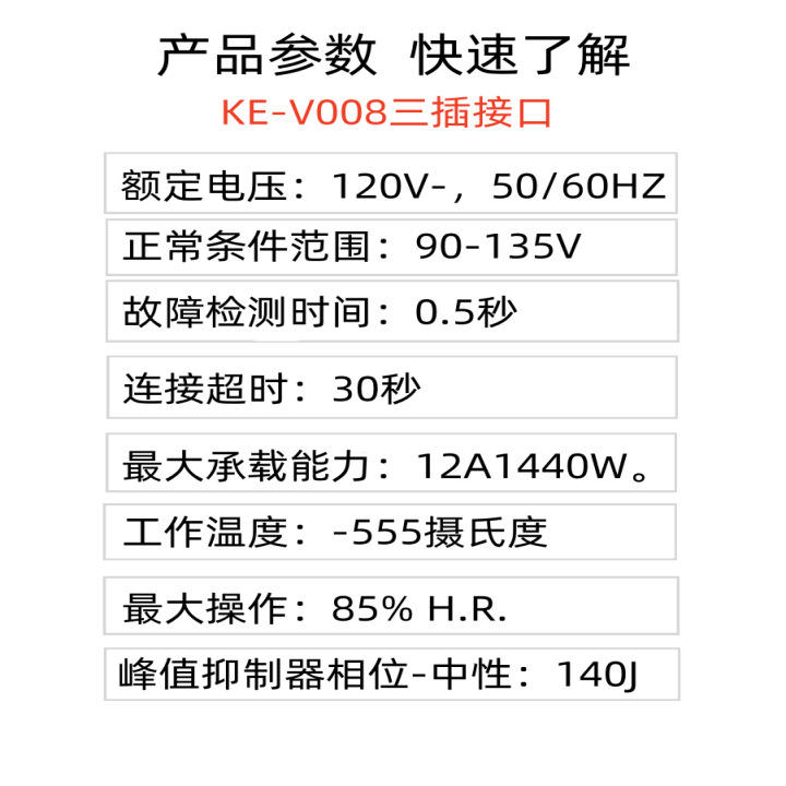 เต้ารับป้องกันไฟกระชากแบบรีเซ็ตอัตโนมัติ 120V แบบอเมริกัน พร้อมไฟแสดงสถานะ ปลั๊กสามขา ป้องกันไฟเกิน/ไฟตก