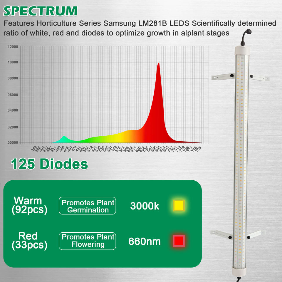 ไฟปลูกพืช LED 120W 4 ฟุต PPE 2.9μmol/J แสงส่องจากด้านบน สำหรับพืชสวน ผักปลูกแบบปลูกในกระถาง ผักใบเขียว สมุนไพร