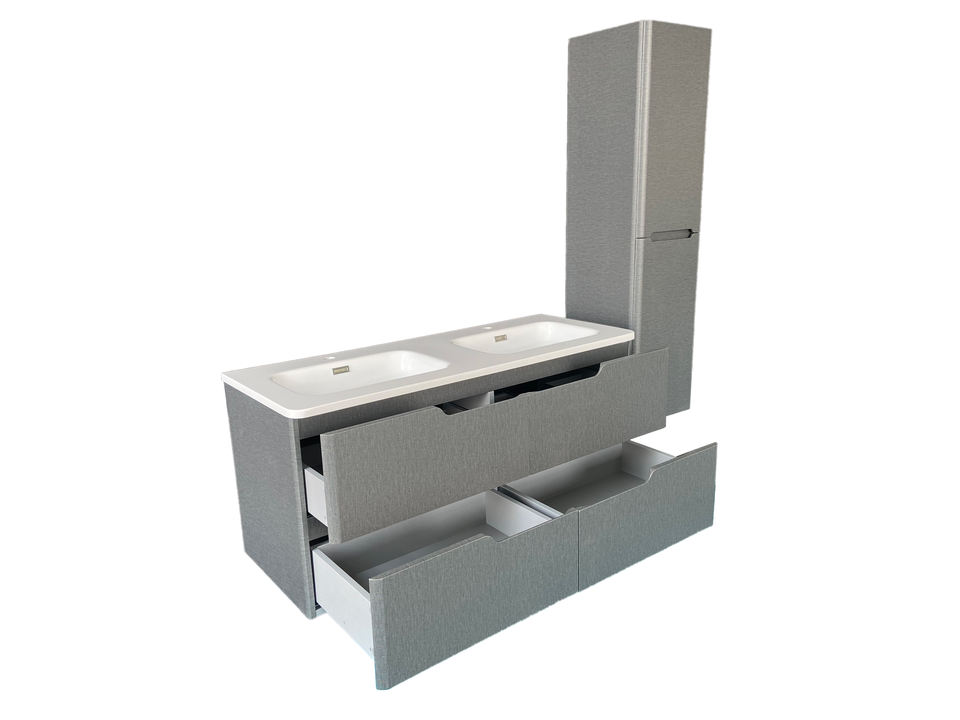 อ่างล้างจานสองชั้นขนาดใหญ่พร้อมตู้กระจกแบบลอยติดผนังทันสมัยหรูหราขนาด120ซม.