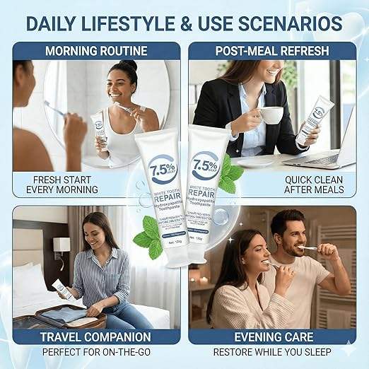 ยาสีฟันไฮดรอกซีอะพาไทต์ 7.5% nHAP ซ่อมแซมเคลือบฟัน ยาสีฟันไวท์เทนนิ่งสำหรับฟันบอบบาง ลมหายใจสดชื่น ลดคราบสกปรก ดูแลช่องปาก