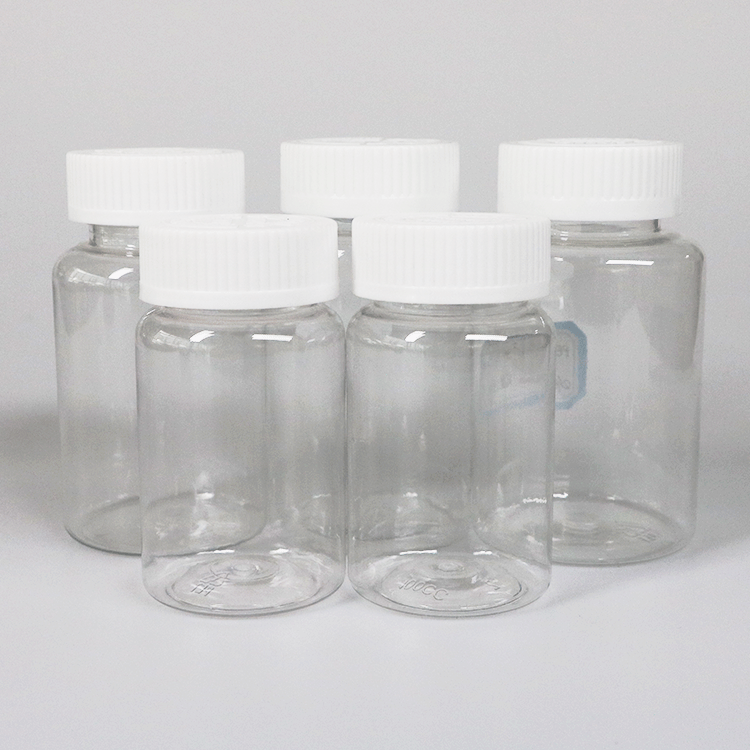 ขวดพลาสติกสำหรับใส่วิตามินพร้อมฝาโลหะขนาด120มล. ใส่ยาเม็ดสัตว์เลี้ยงแบบใสพิมพ์ได้ตามต้องการ