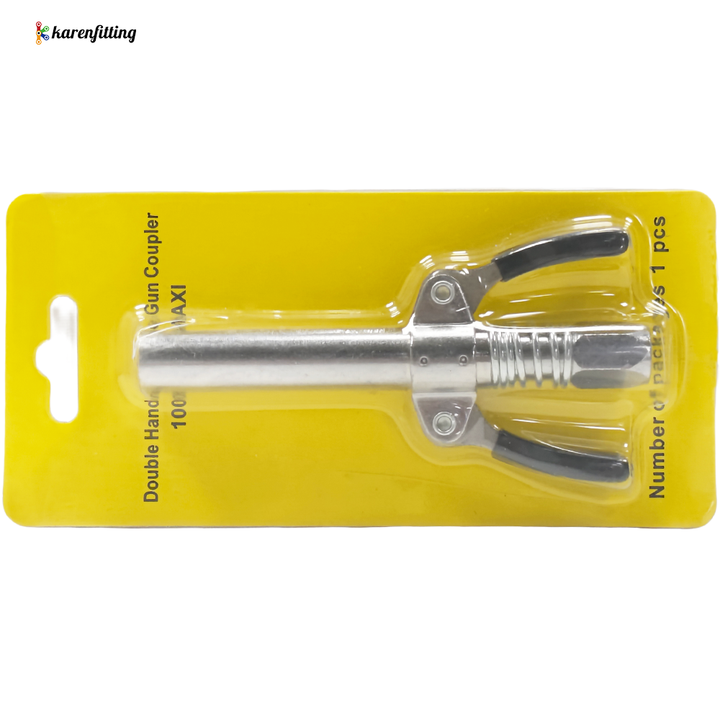 ปืนอัดจาระบีเหล็กขนาด 120 มม. แบบสองด้ามจับ แรงดันสูง 10000 PSI พร้อมคีมล็อค หัวฉีดน้ำมันแบบยาวสำหรับแรงดันสูง