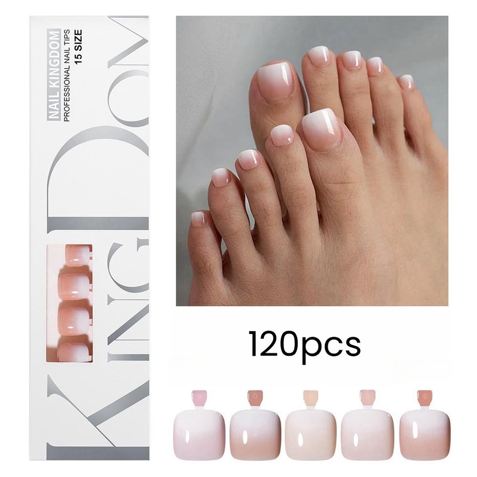 120ชิ้นหัวสี่เหลี่ยมแบบฝรั่งเศสแบบค่อยเป็นค่อยไปน้ำมันสเปรย์สำเร็จรูปเล็บปลอมแบบกดบนเล็บงานศิลปะ120ชิ้นเล็บนิ้วเท้าสี่เหลี่ยม