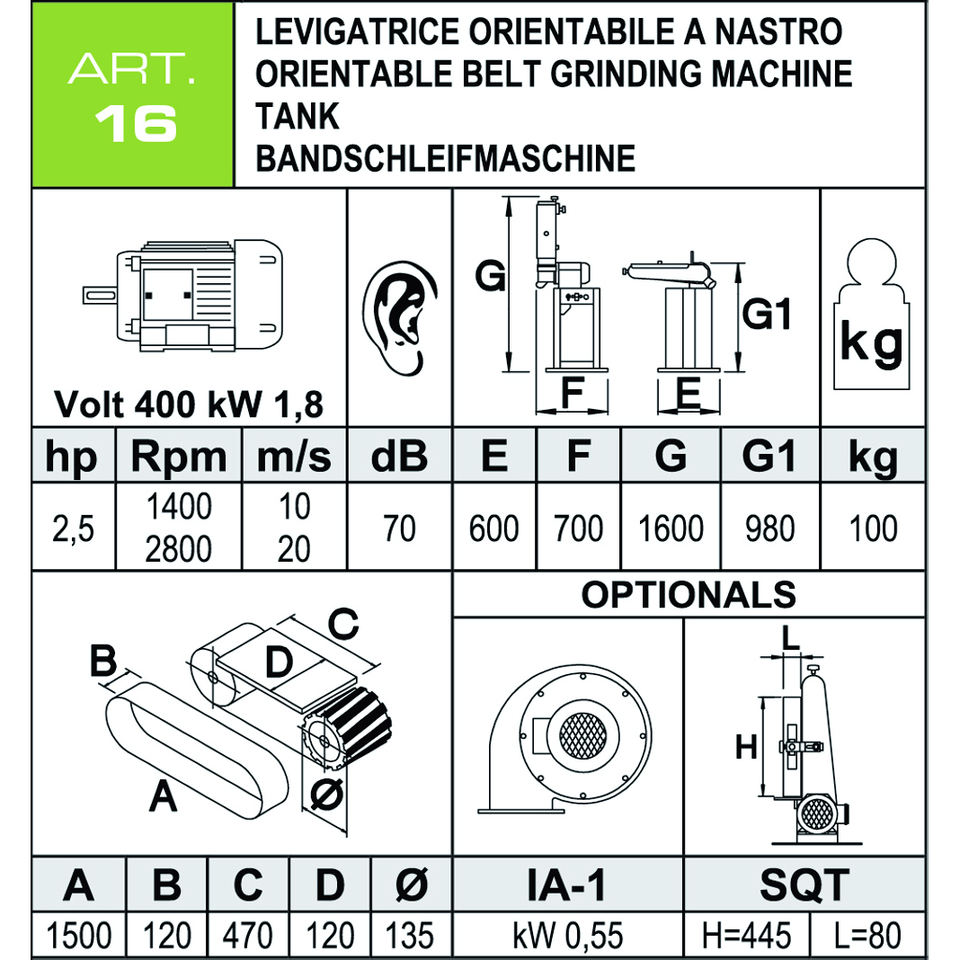เครื่องขัดสายพานแบบหมุน120X1500มม. 2.2kW 400V