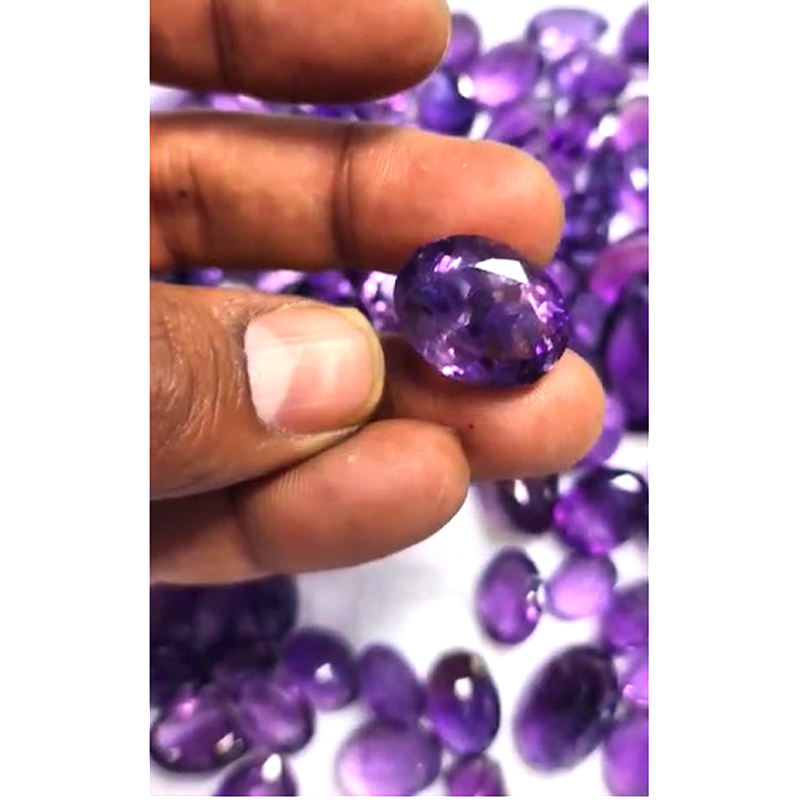 พลอยอเมทิสต์ธรรมชาติ121ชิ้น12มม. ถึง18มม. รูปไข่รอบ1350 CTS ล็อตตัดอัญมณีคุณภาพสูงขายส่งเรา $202
