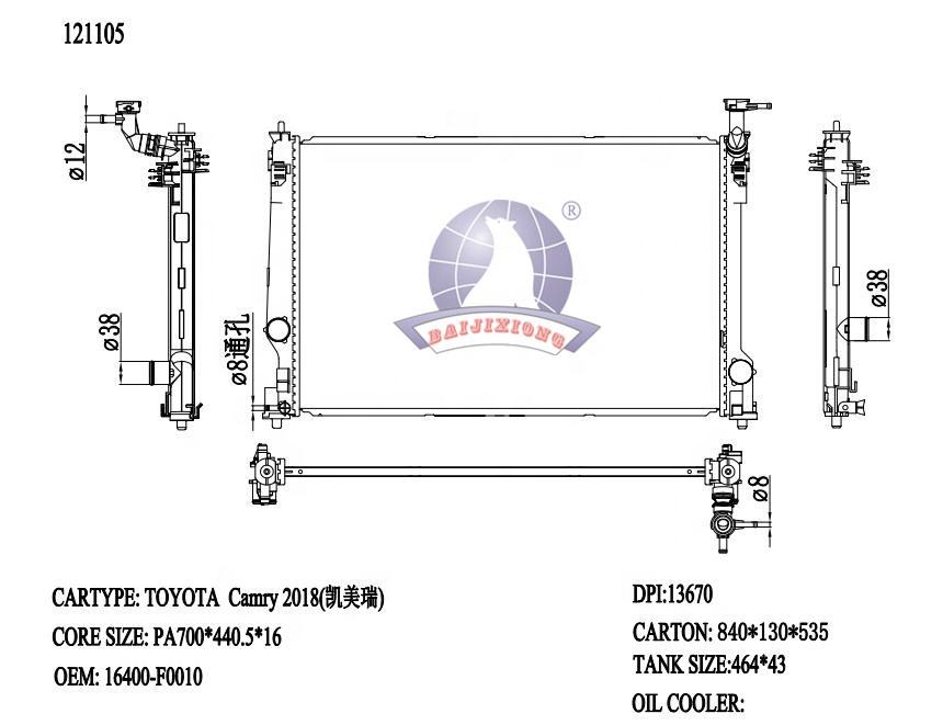 หม้อน้ำรถยนต์สำหรับ Toyota Camry 16400F0010 13670 121105 Polar อะไหล่รถยนต์ VH7 VA7 V7