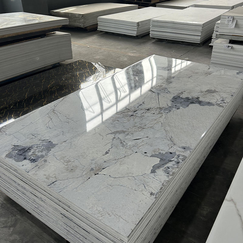 แผ่นพีวีซีเคลือบยูวีเงาสูงกันน้ำ ขนาด 1220*2440 มม. ลายหินอ่อน สำหรับตกแต่งผนังภายใน