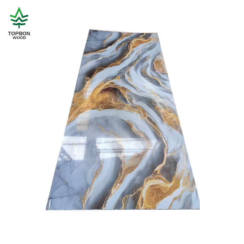 แผ่นไลเนอร์สีทอง1220*2440มม. 3D หินอ่อนยูวีดีไซน์ตามสั่งแผงติดผนังพลาสติก UV ดีแผงติดผนัง