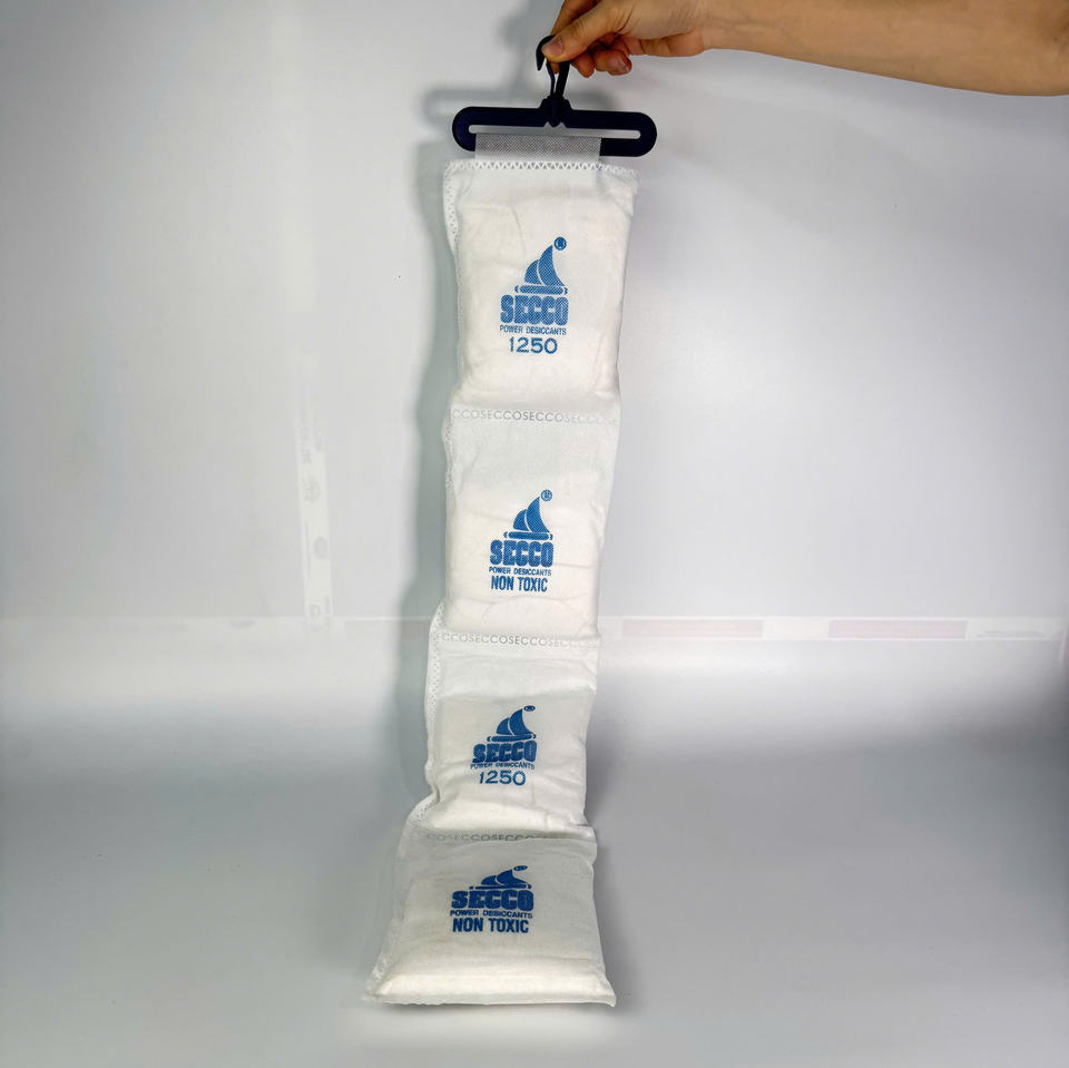ผงดูดความชื้นแคลเซียมคลอไรด์ Secco ขนาด 1250 กรัม/4 ถุง สำหรับควบคุมความชื้นในภาชนะบรรจุสินค้าส่งออก ผลิตจากโรงงานในเวียดนาม